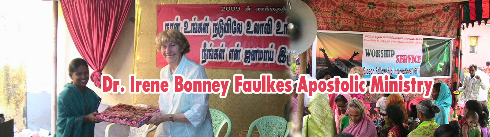 - Dr. Irene Bonney Faulkes Ministry has reached out to hundreds of thousands of people around the world during her lifetime of ministry. Hundreds of thousands wonderfully received the ‘dunamis power’, baptised with/of the Holy Spirit, people saved, healed, and having miracles. Churches and many Shepherds/Pastors have been revived in thirteen countries.
